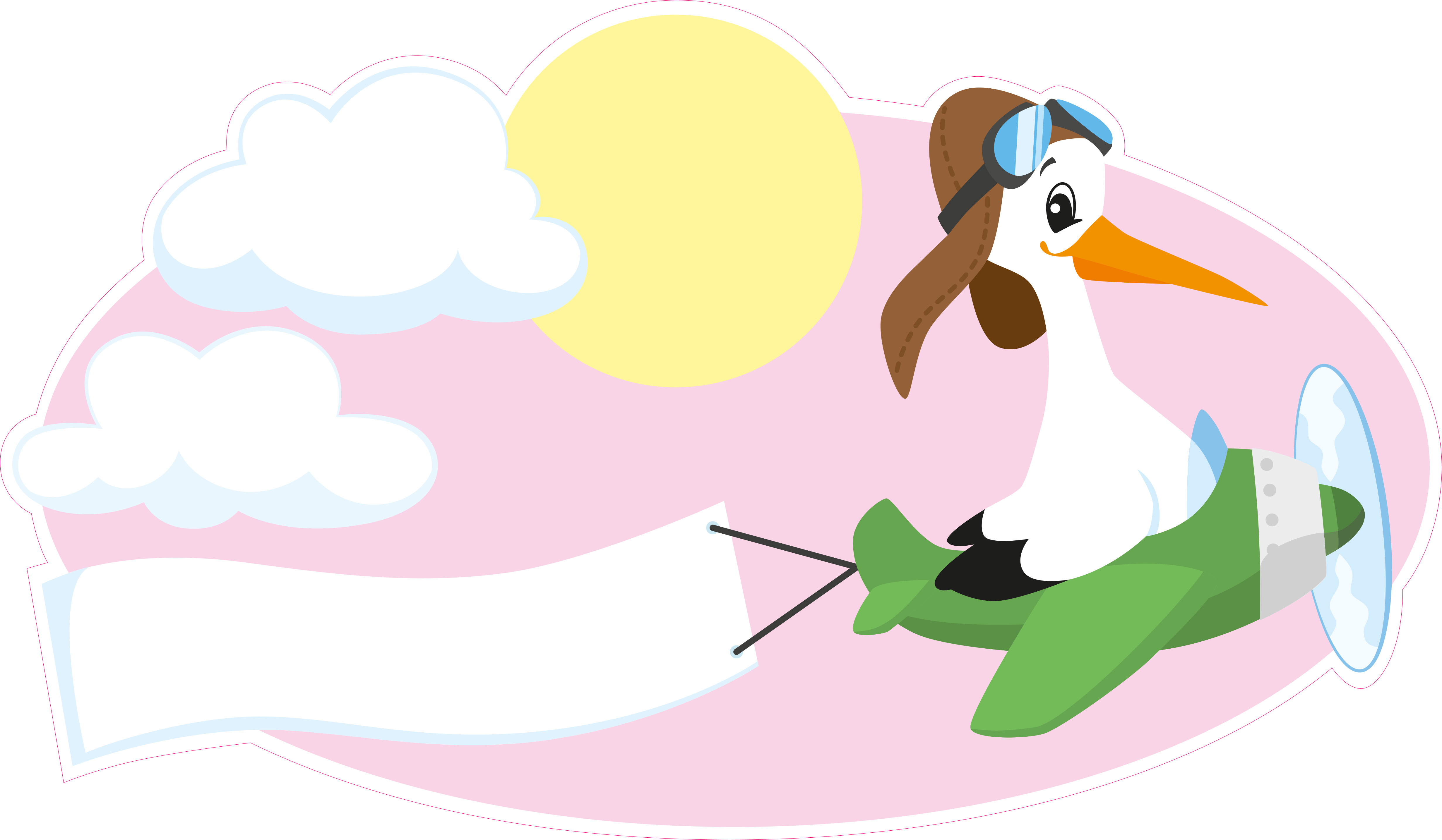 Klapperstorch Schild für das Neugeborene mit dem Motiv Storch im Flugzeug rosa